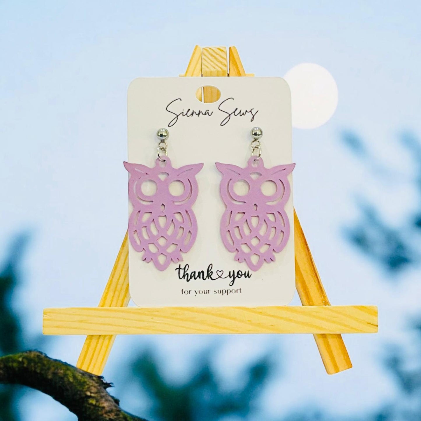 Fly into style with these enchanting lilac owl earrings! Handcrafted from genuine kangaroo leather, these cute earrings feature a lovely owl design in a soft lilac colour, perfect for adding a touch of whimsy to your look. Designed in a smaller size, they’re ideal for kids or adults who love fun, animal-inspired accessories. Lightweight and comfortable with stainless steel attachments, these earrings bring a bit of magic and charm to any outfit!