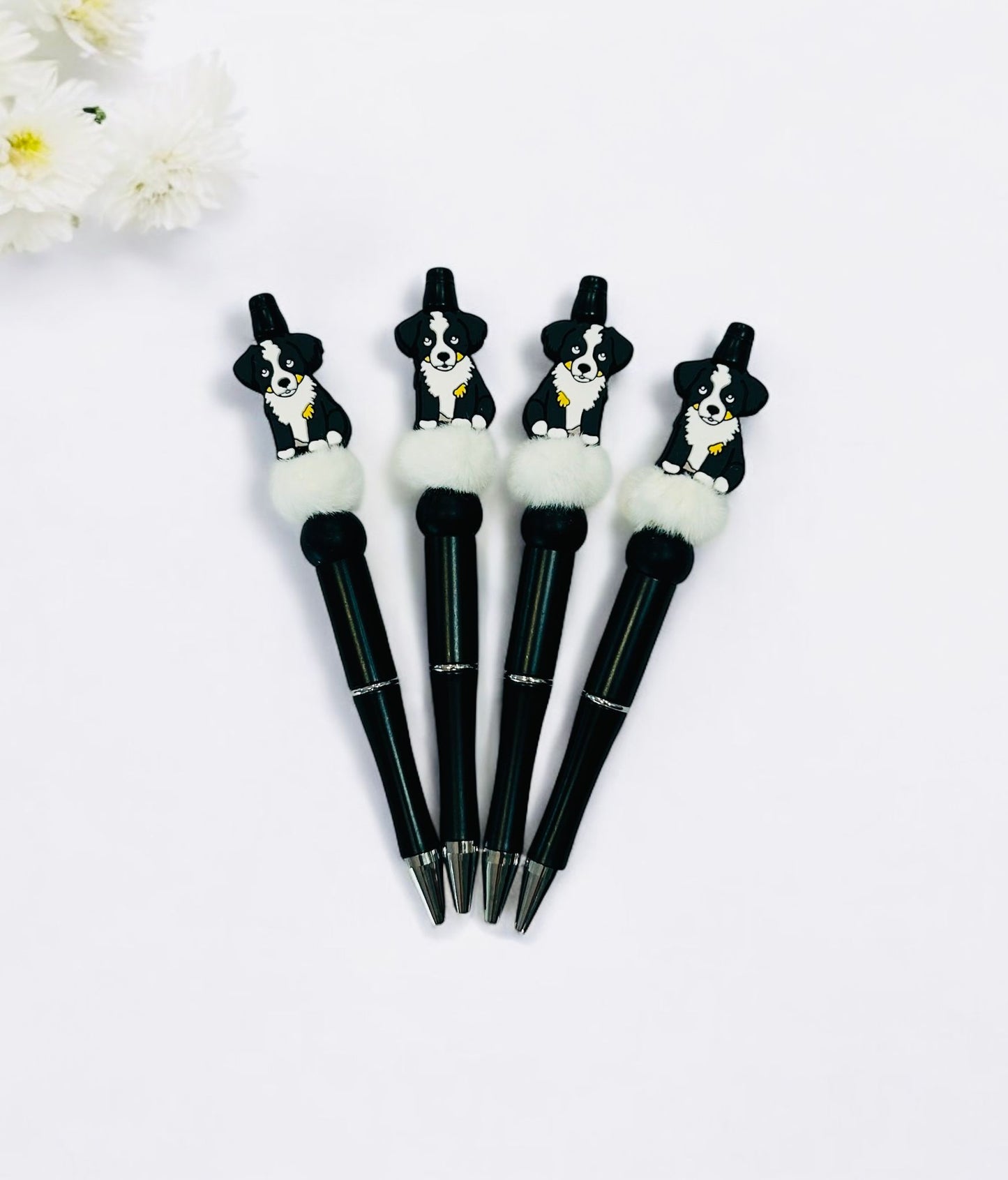 This black and white pen features a Border Collie focal bead and a soft, fluffy white bead. A fun and functional addition to your stationery collection or a perfect gift for dog lovers.