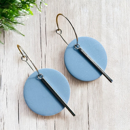 Elevate your style with the Elegant Drop Earrings, featuring a sleek circular design with a drop bar on a hoop. Handcrafted from high-quality polymer clay, these lightweight earrings are available in stunning shades of Charcoal, Khaki Green and Soft Blue. The earrings are finished with a choice of gold or silver hoops and attachments, offering a customisable touch of elegance to suit your style. Lovingly made on the Sunshine Coast.