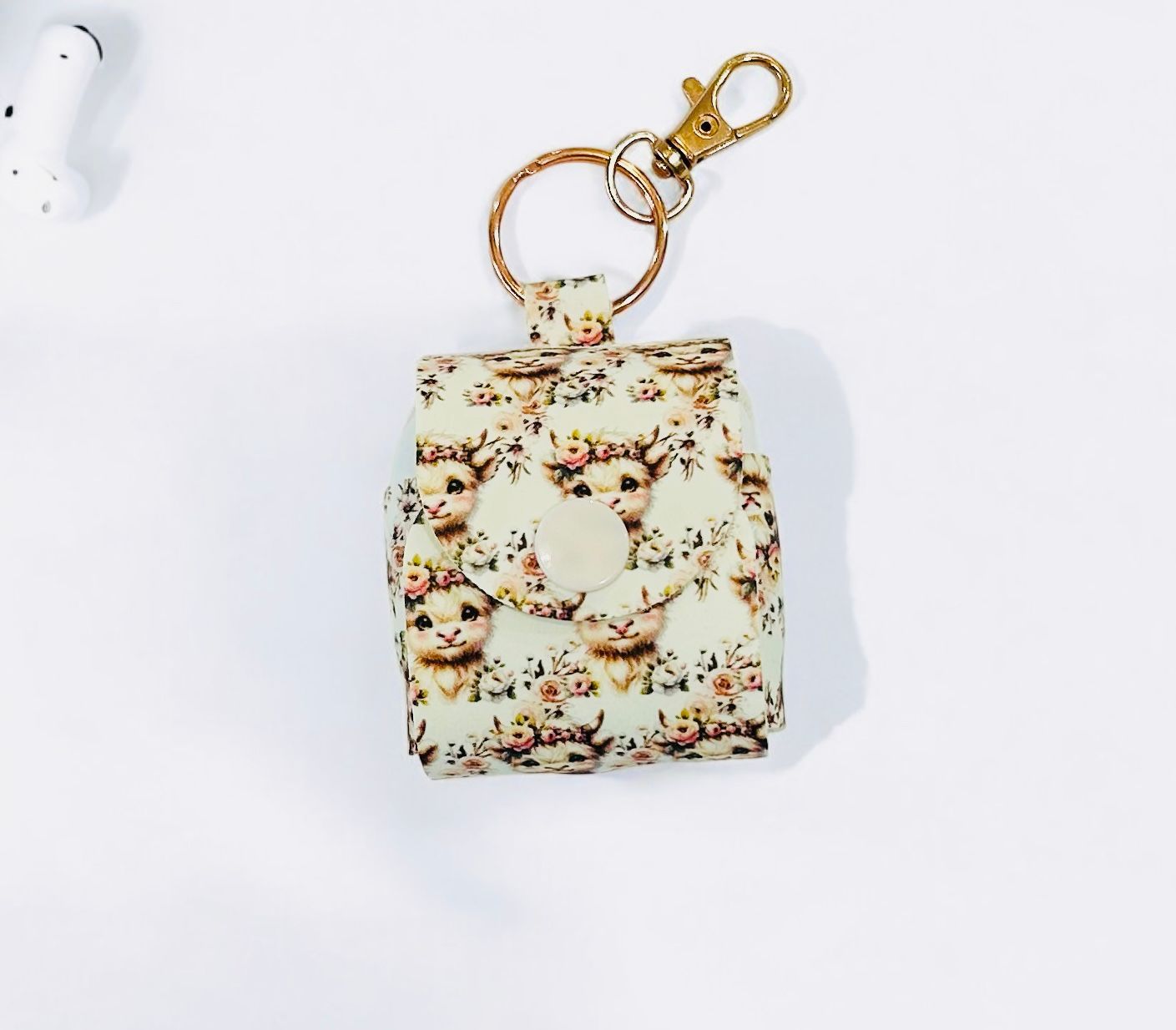 Keep your AirPods secure and accessible with this sleek faux leather case, available in a variety of prints. Designed for a perfect fit, it includes a keychain for easy attachment to your bag or keys. A charging port hole allows you to charge without removing the case. Handmade, durable, and lightweight, this case combines style and practicality for your everyday essentials.
